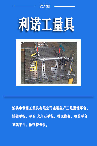 泊頭市利諾工量具有限公司加工、銷售、維修各種規(guī)格鑄鐵平臺,鑄鐵平板,大理石平臺,大理石平板,大理石構(gòu)件,檢驗平臺,檢驗平板,劃線平臺,劃線平板,焊接平臺,焊接平板,三維柔性焊接平臺,三維柔性焊接平板,裝配平臺,裝配平板,試驗臺,機床工作臺,墊鐵,鑄件,方箱,彎板,偏擺檢查儀,機床配附件,機床維修,機床修理